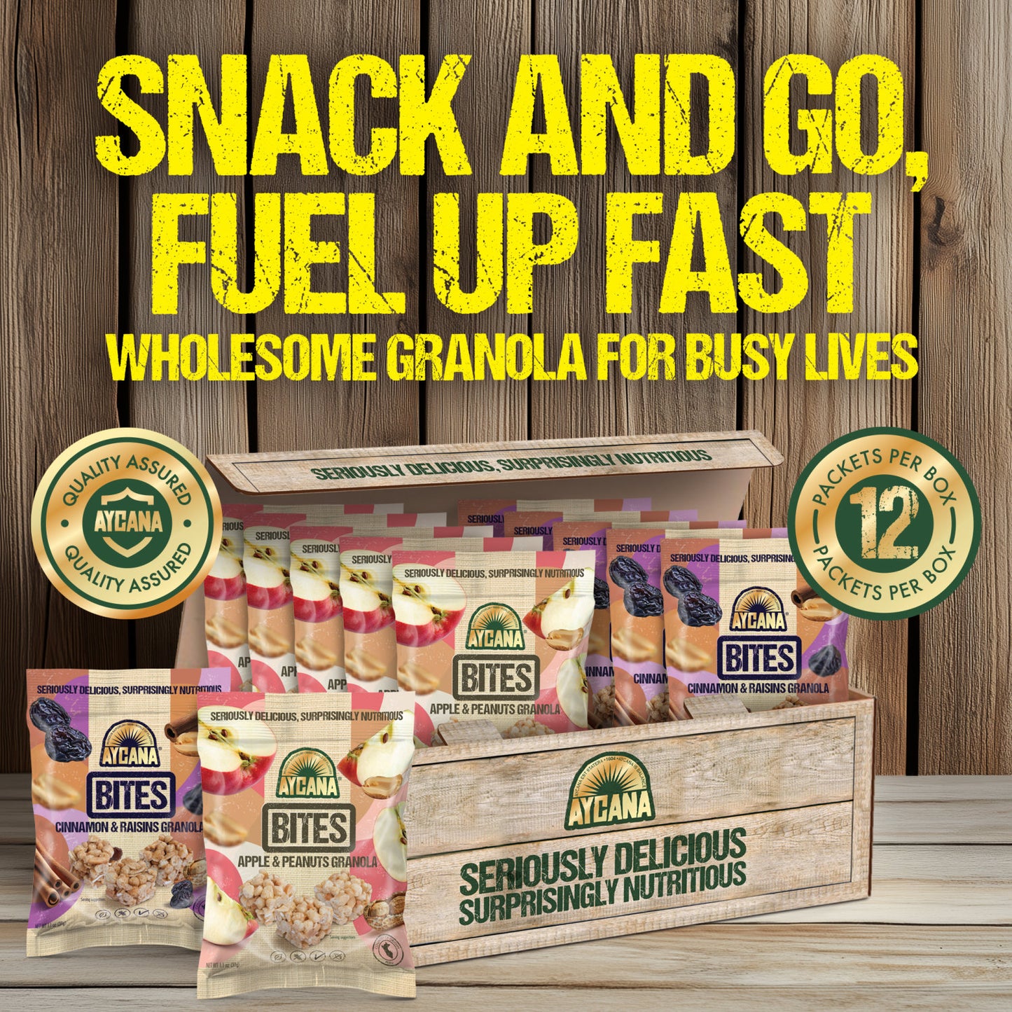 AYCANA Snack & Go Granola Bites Variety Box, 12 Snack Packs — 1.1 oz Each