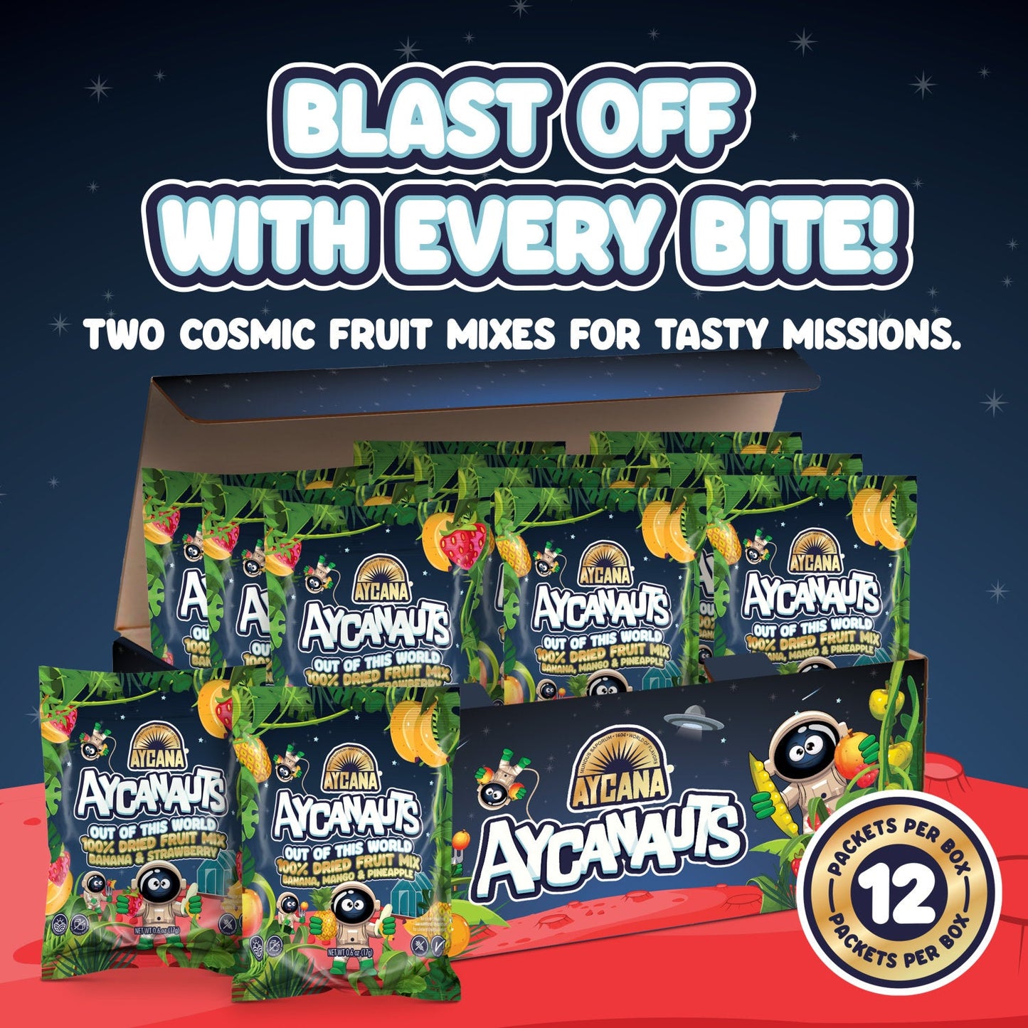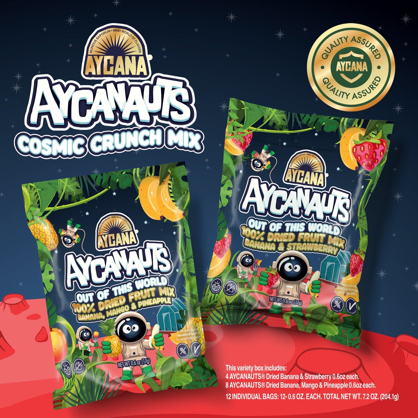 AYCANAUTS Cosmic Crunch Mix – Dried Fruit Variety Pack, 12 Boxes — 12 Bags per Box, 0.6 oz Each