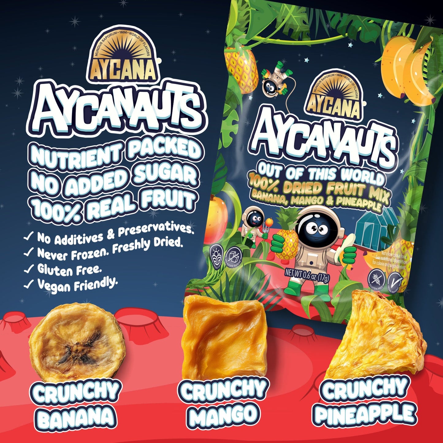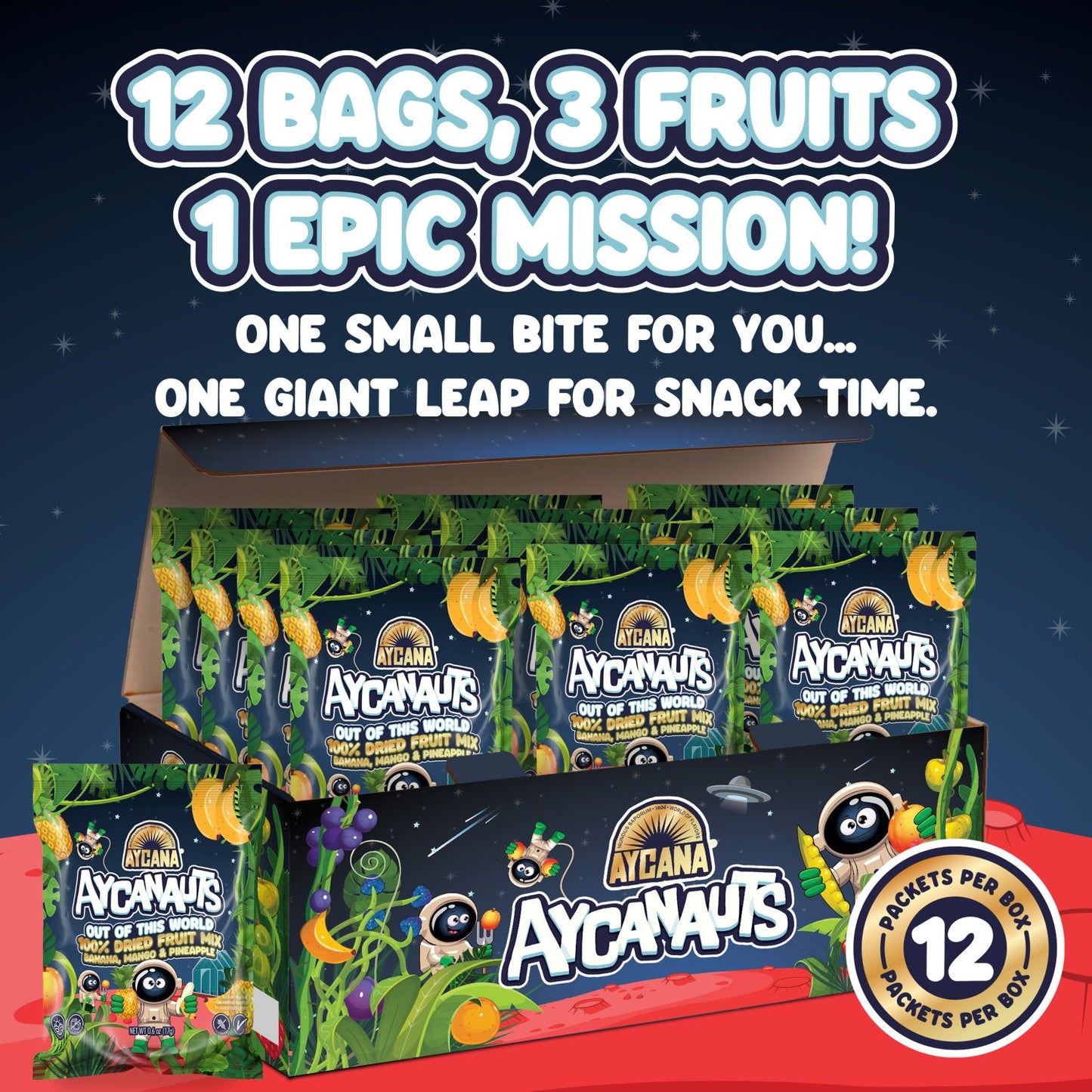 AYCANAUTS Galactic Gold Mix – Dried Fruit Variety Pack, 12 Boxes — 12 Bags per Box, 0.6 oz Each