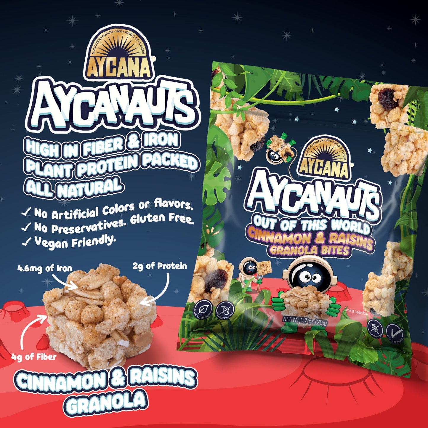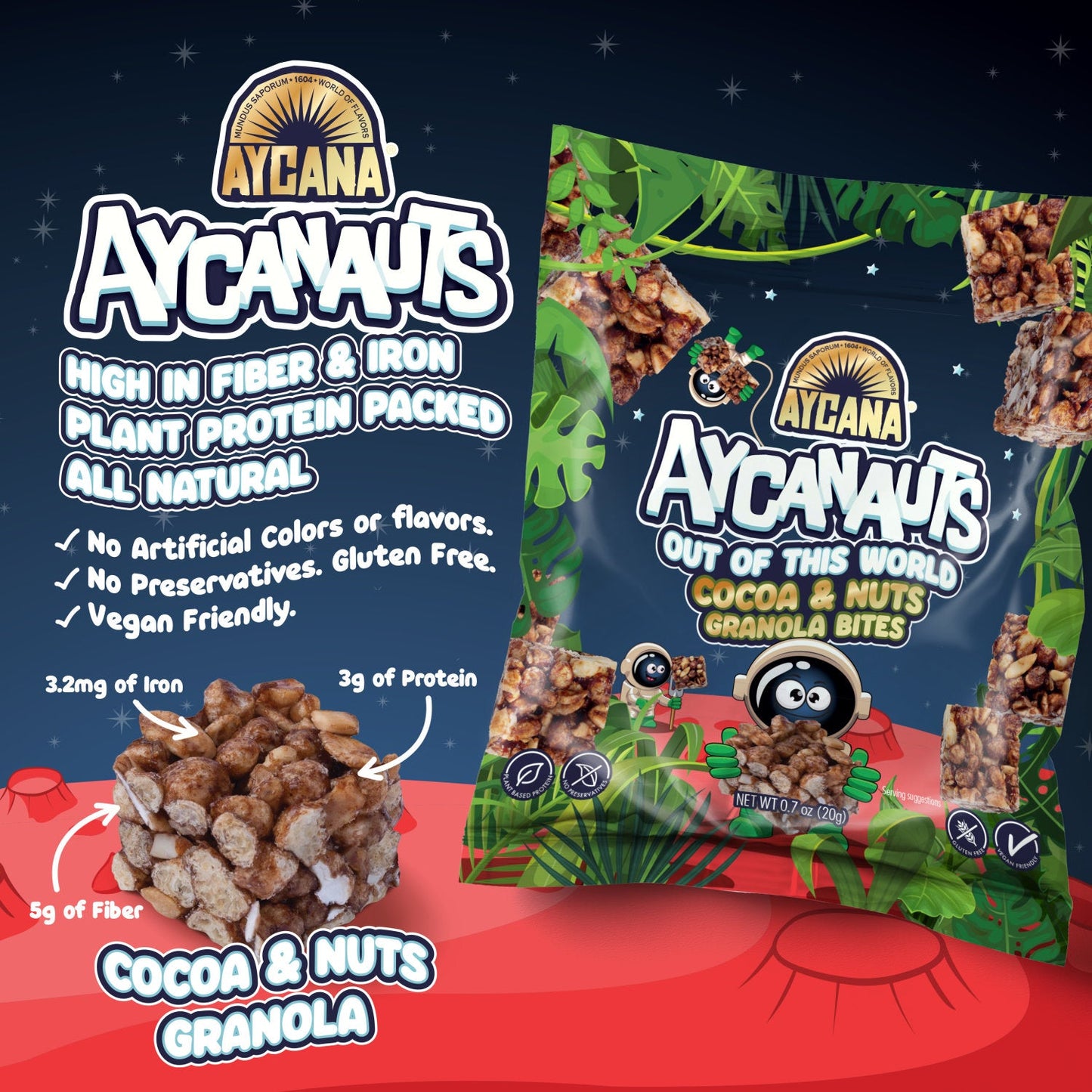 Blast off into better snacking with the AYCANAUT GALAXY Variety Box—a lunchbox-friendly collection of 12 mini bags featuring all four AYCANAUT BITES flavors. Each 0.7 oz bag is perfectly portioned for young space explorers, packed with clean ingredients, plant-based protein, and natural fiber. No artificial colors, flavors, or preservatives—just snacks that pass both the kid test and the mom test.