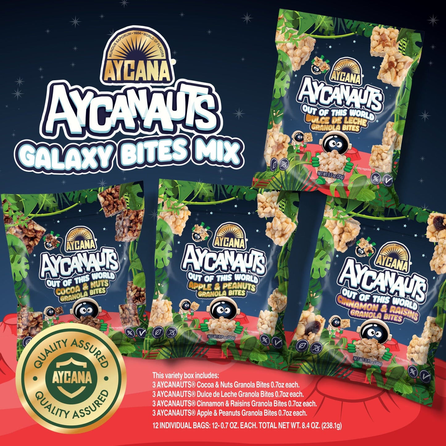 AYCANAUTS Galaxy Bites Mix – Granola Bites Variety Pack, 12 Boxes — 12 Bags per Box, 0.7 oz Each