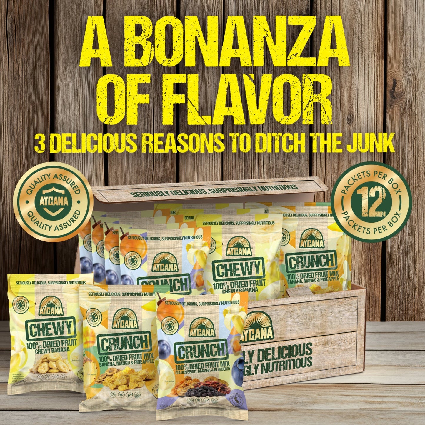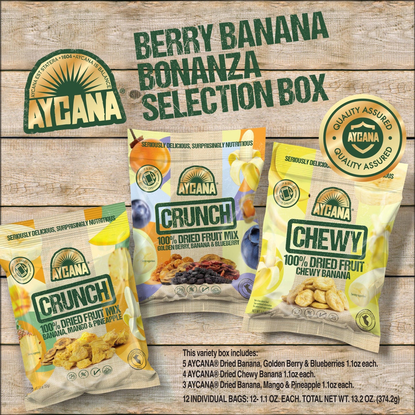 AYCANA Berry Banana Bonanza – Dried Fruit Variety Pack, 12 Boxes — 12 Bags per Box, 1.1 oz Each