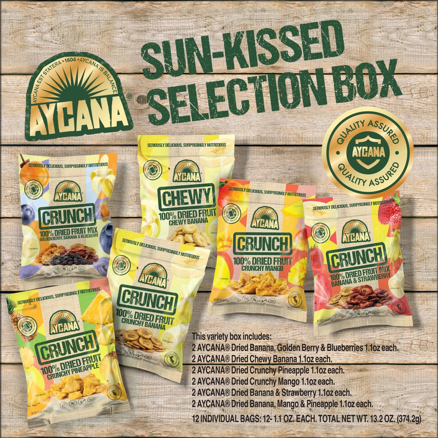AYCANA Sun-Kissed – Dried Fruit Variety Pack, 12 Boxes — 12 Bags per Box, 1.1 oz Each