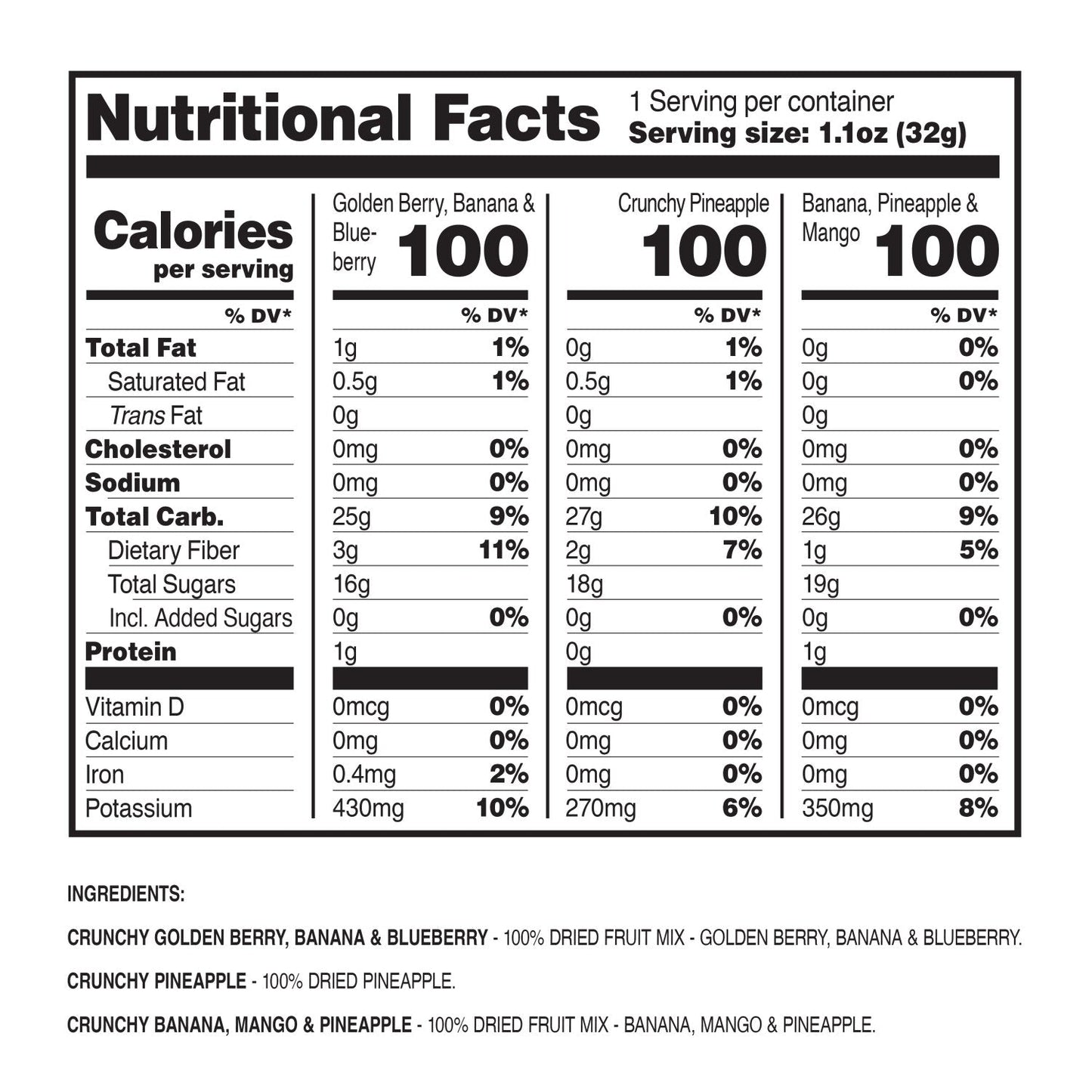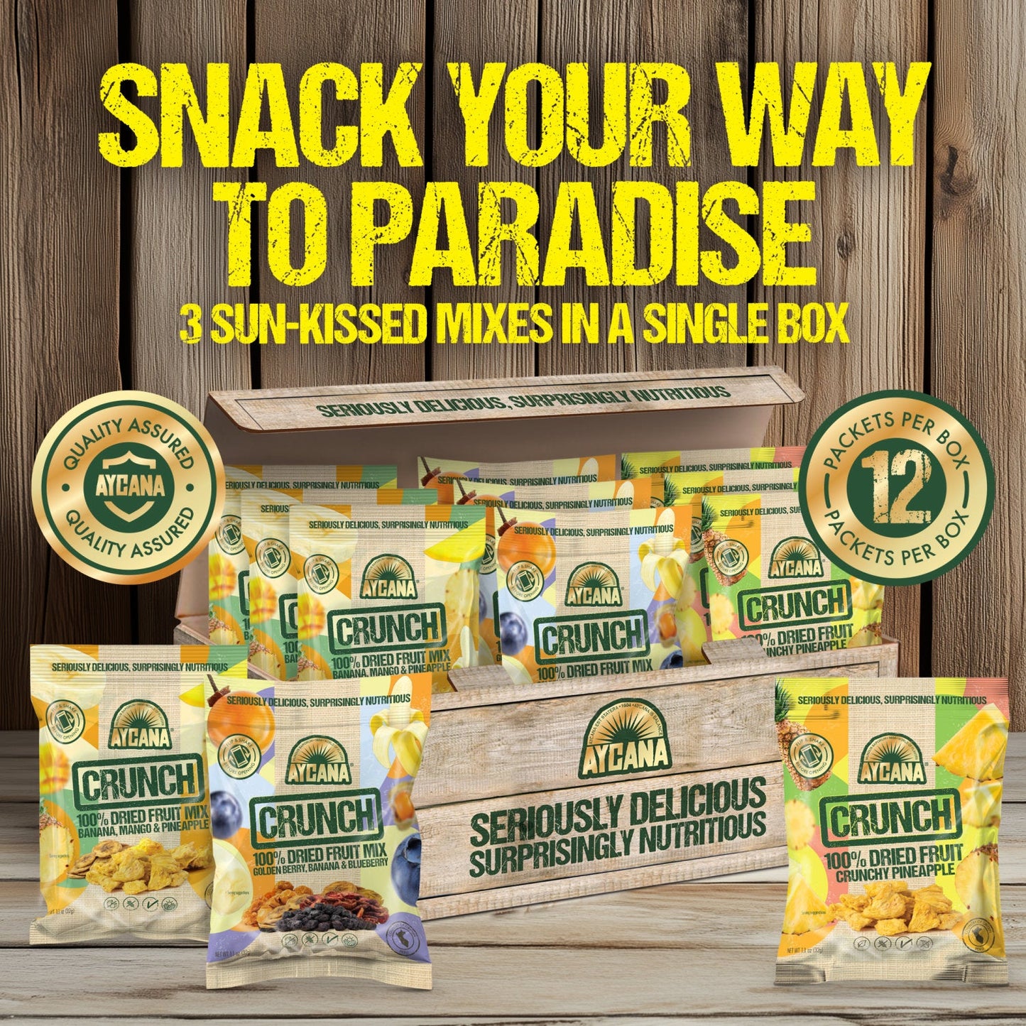 AYCANA Tropical Trio Selection Box – Dried Fruit Variety Pack, 12 Boxes — 12 Bags per Box, 1.1 oz Each
