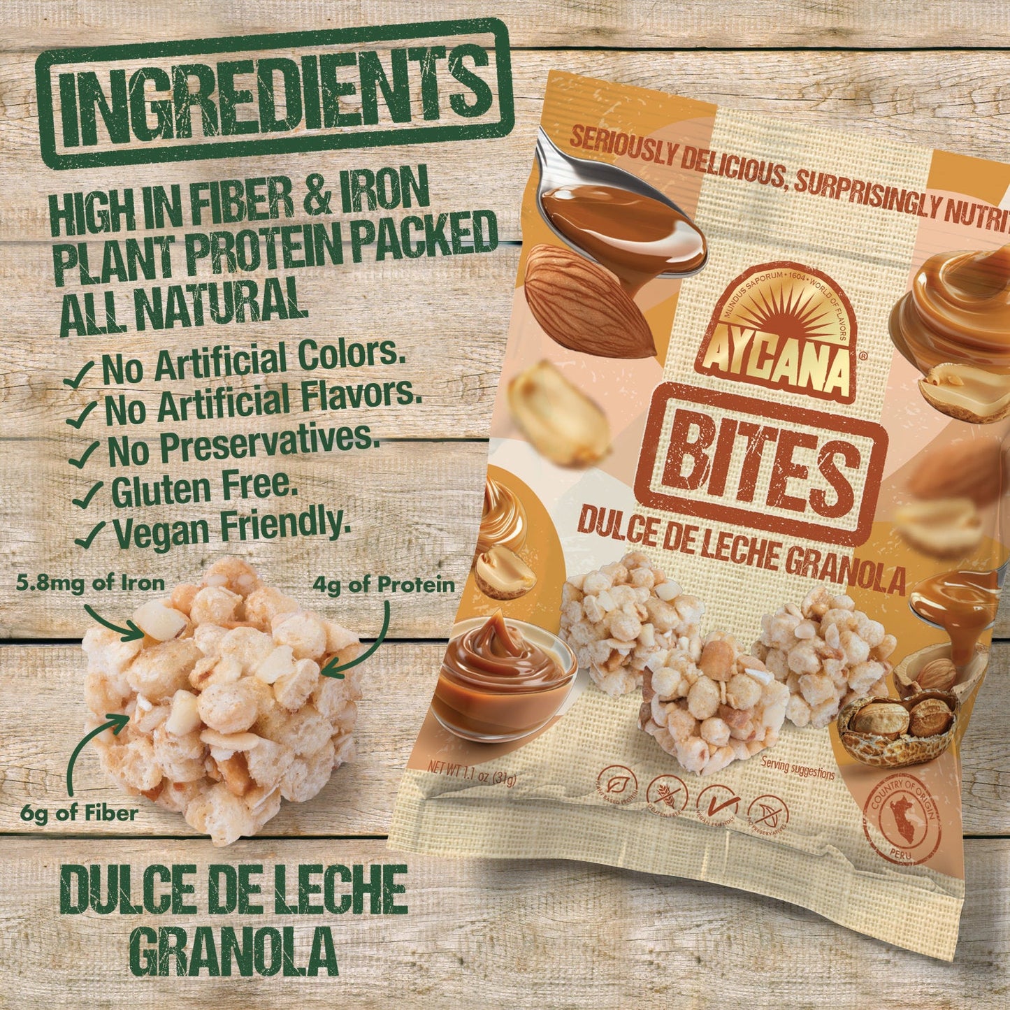 - Granola bites are high in fiber & iron, packed with plant-based protein.